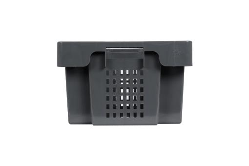 Der Drehstapelbehälter bietet ausreichend Platz für Ihre Produkte, mit seinen Grundmaßen von 600 x 400 mm und einer Höhe von 250 mm. Das zähe Material HDPE sorgt für eine hervorragende Spannungsriss- und Chemikalienbeständigkeit. Der Drehstapelbehälter ist ausgestattet mit einer geschlossenen, glatten Bodenausführung sowie einer durchbrochenen Seitenausführung und umfasst einen Volumenbereich von 40 - 59 Litern. Besonders praktisch: Durch zwei Eingriffe kann er angenehmer getragen werden.