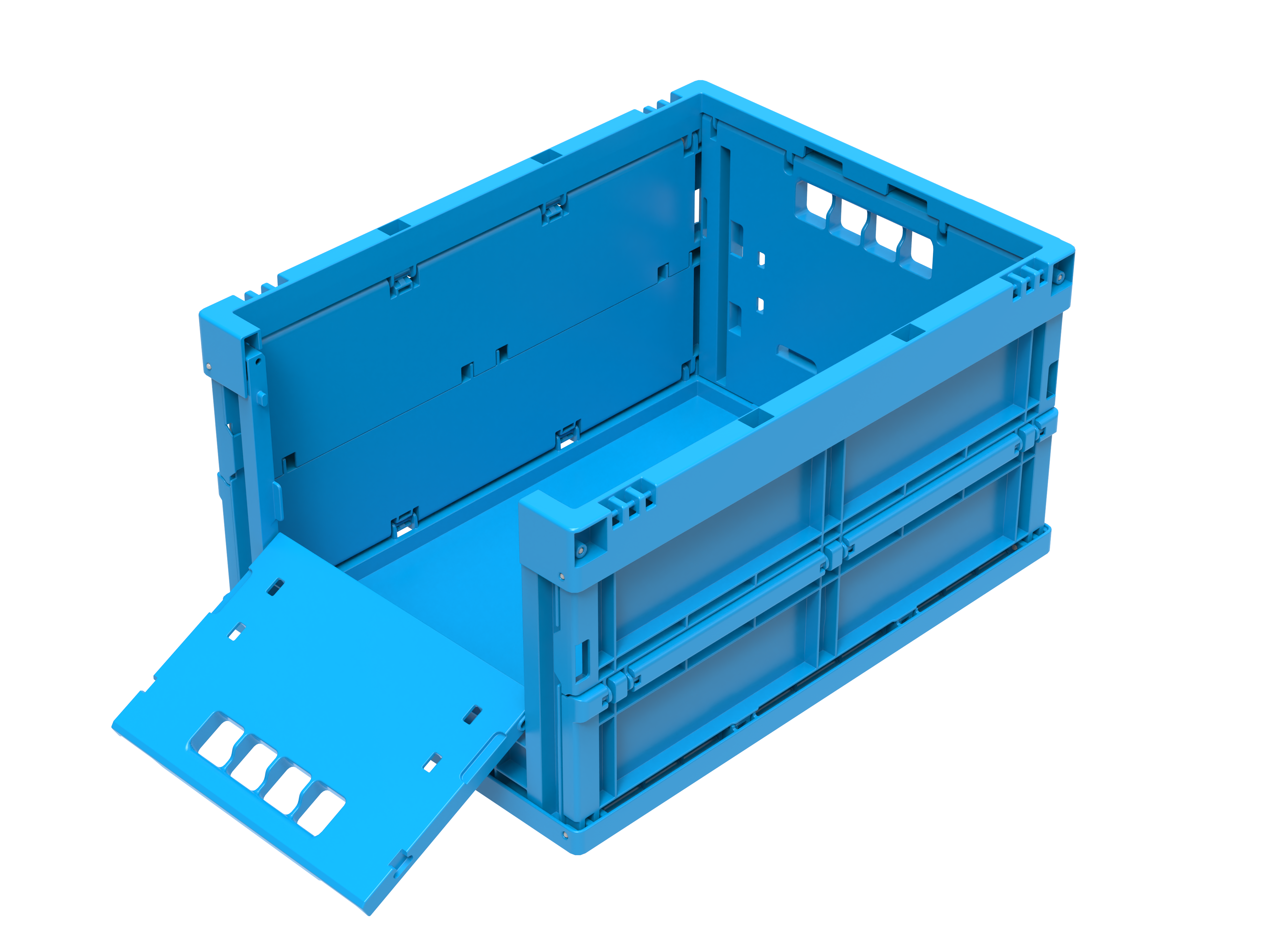 - Volumenreduzierung: Durch simples Zusammenfalten der Wände reduziert sich das Leervolumen um ca. 74 %. Das spart Lager- und Transportkosten für die Rückführung des Leerguts und macht die Anwendung besonders nachhaltig und wirtschaftlich.