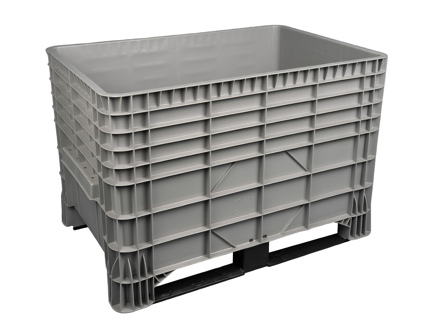 Basic information Article number: 05-1-00014 Article type: Large Rigid Containers Color: grey Material : HDPE Shipping unit : 1 piece Pallet type : with 2 skids More product features Description sides : closed Base design : closed Dimensions and loads External dimensions (approx.) : 1200 x 800 x 810 mm Internal dimensions (approx.) : 1120 x 750 x 650 mm Load capacity stat. (approx.) : 300 kg Usable volume (approx.) : 546 l