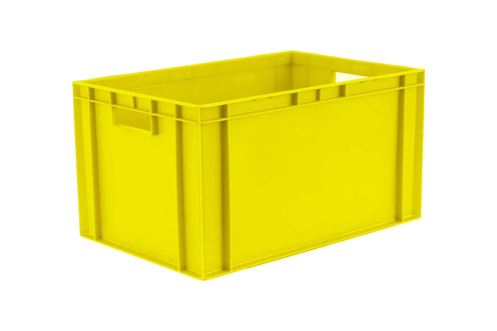 Basic information Article number: 01640321AEA Article type: Stacking Boxes Color: yellow Material : PP Shipping unit : 1 piece Quantity per pallet : 24 pieces Quantity per carton : 2 pieces More product features Handles : two Description sides : closed Base design : solid, no ribs Suitable for food-contact : suitable for food-contact Dimensions and loads External dimensions (approx.) : 600 x 400 x 320 mm Internal dimensions (approx.) : 551 x 352 x 305 mm Load capacity stat. (approx.) : 60 kg Usable volume (approx.) : 59 l -