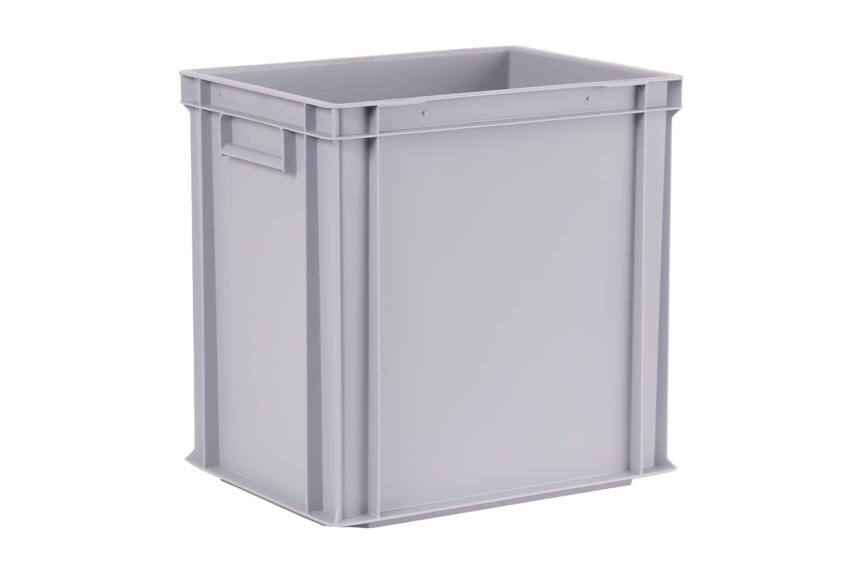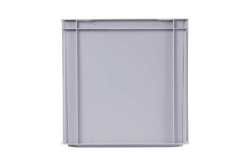 Basic information Article number: 01430403M Article type: Stacking Boxes Color: light grey Material : PP Shipping unit : 1 piece Quantity per pallet : 40 pieces Quantity per carton : 4 pieces More product features Handles : recessed grip Description sides : closed Base design : closed, ribbed Dimensions and loads External dimensions (approx.) : 400 x 300 x 400 mm Internal dimensions (approx.) : 366 x 266 x 385 mm Usable volume (approx.) : 37 l -