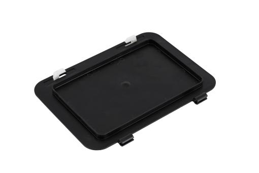 Basic information Article number: 01210006T Article type: Lids Color: black Material : PP Shipping unit : 1 piece Quantity per carton : 4 pieces More product features Suitable for food-contact : suitable for food-contact Additional product information: suitable for Pico Dimensions and loads External dimensions (approx.) : 200 x 150 mm -