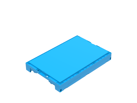 Basic information Article number: 04640300F Article type: Folding Boxes Color: WALTHER-blue Material : PP Shipping unit : 1 piece Quantity per pallet : 100 pieces Quantity per carton : 10 pieces More product features Handles : one Description sides : closed Base design : solid, no ribs Dimensions and loads External dimensions (approx.) : 600 x 400 x 300 mm Internal dimensions (approx.) : 555 x 355 x 290 mm Opening : on short side Folded height (approx.) : 80 mm Load capacity stat. (approx.) : 60 kg Usable volume (approx.) : 57 l -