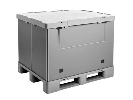 Basic information Article number: 05210940Z Article type: Large Folding Containers Color: grey Material : PP Shipping unit : 1 piece Quantity per pallet : 9 pieces Quantity per truck : 234 pieces Pallet type : with 3 skids More product features Description sides : closed Base design : closed Dimensions and loads External dimensions (approx.) : 1200 x 1000 x 940 mm Internal dimensions (approx.) : 1160 x 960 x 730 mm Load capacity stat. (approx.) : 1000 kg Usable volume (approx.) : 812 l -