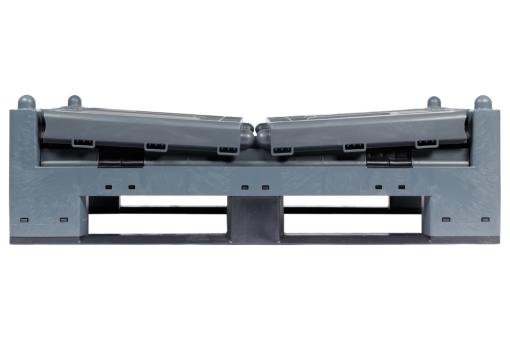Basic information Article number: 05210874FZ Article type: Collapsible Pallet Boxes Color: dark grey Material : recycled PP Shipping unit : 1 piece Pallet type : with 2 skids More product features Description sides : closed Base design : closed Dimensions and loads External dimensions (approx.) : 1200 x 1000 x 847 mm Internal dimensions (approx.) : 1120 x 920 x 654 mm Load capacity stat. (approx.) : 600 kg Usable volume (approx.) : 650 l -