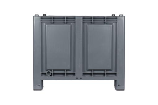 Basic information Article number: 05210885D4F Article type: Large Rigid Containers Color: dark grey Material : recycled PP Shipping unit : 1 piece Quantity per pallet : 2 pieces Quantity per truck : 78 pieces Pallet type : with 4 feet More product features Description sides : closed Base design : closed Dimensions and loads External dimensions (approx.) : 1200 x 1000 x 830 mm Internal dimensions (approx.) : 1120 x 920 x 655 mm Load capacity stat. (approx.) : 600 kg Usable volume (approx.) : 680 l -