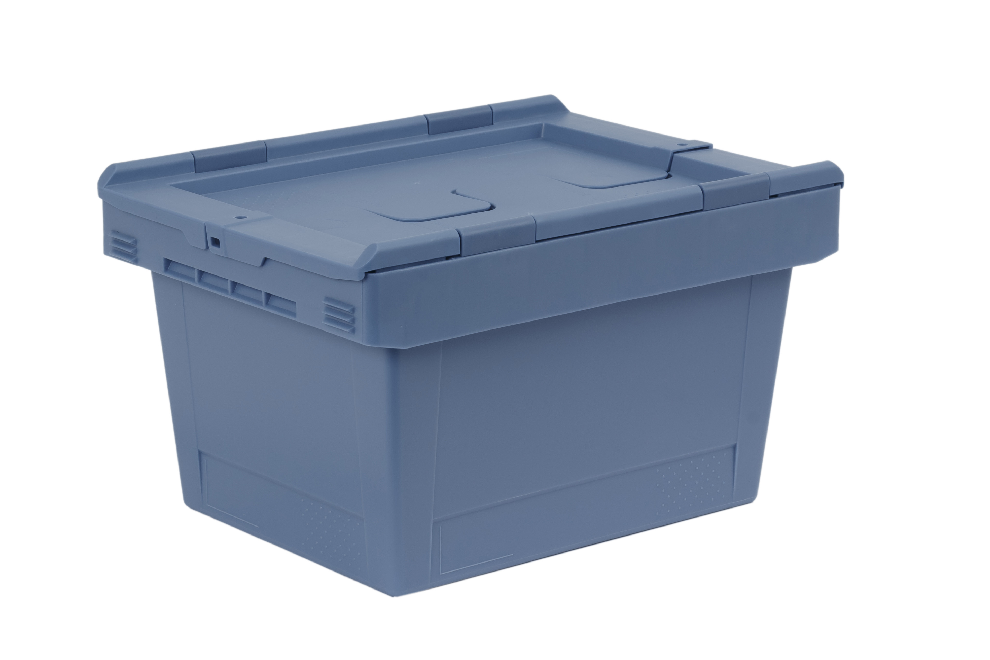 Space-saving, nestable container with a hinged lid, which protects its 18 litres of useful volume from dust and dirt, and can also be conveniently transported thanks to its practical undercut handles.