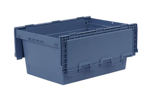 A full 47 litre, nestable plastic container with a hinged lid for protection against dirt and dust.