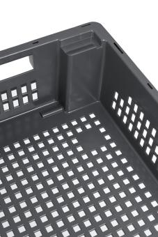 stack & nest container with 25 litres of useful volume and drainage for liquids through a perforated sides and base version. In discreet grey equipped with two undercut handles.