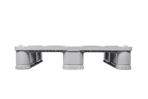 With three runners, a safety rim and an open deck, characterizes this highly stable, heavy duty pallet. In grey design.