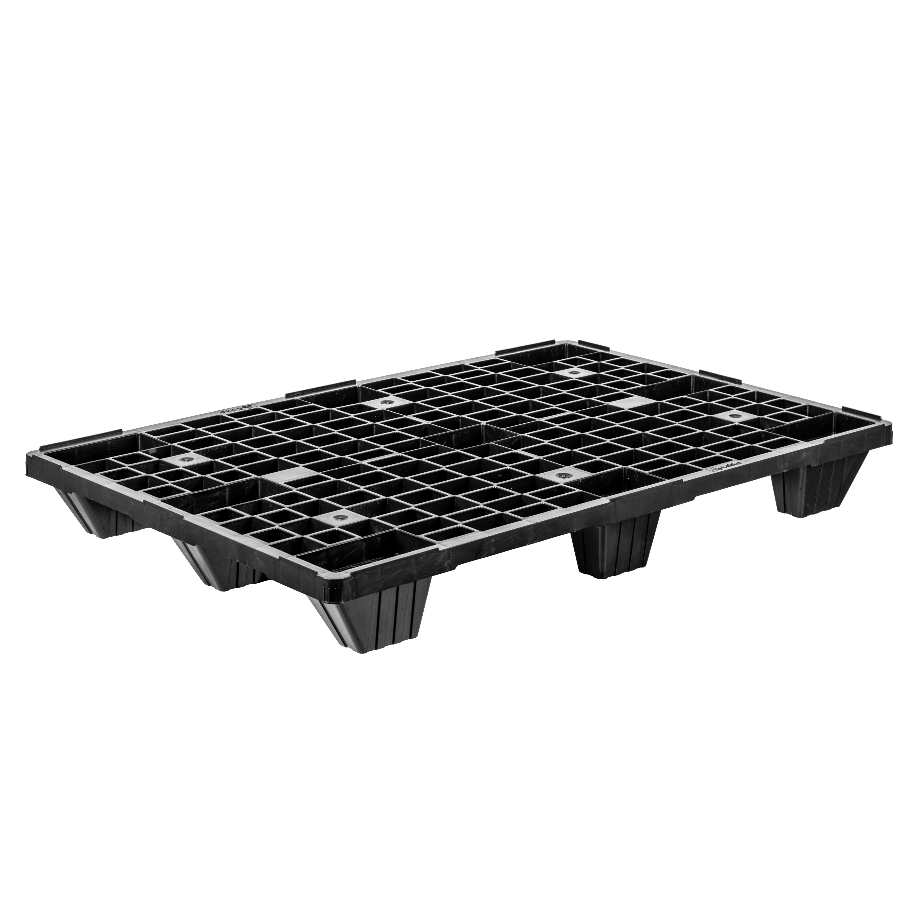 Basic information Article number: 09-1-00036 Article type: Export Pallets Color: anthracite Material : HDPE Shipping unit : 1 piece Quantity per pallet : 42 pieces Pallet type : with 9 feet More product features Arretage : with arrettage Ground clearance : 110 mm Dimensions and loads External dimensions (approx.) : 1200 x 800 x 140 mm Load capacity stat. (approx.) : 1800 kg