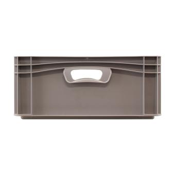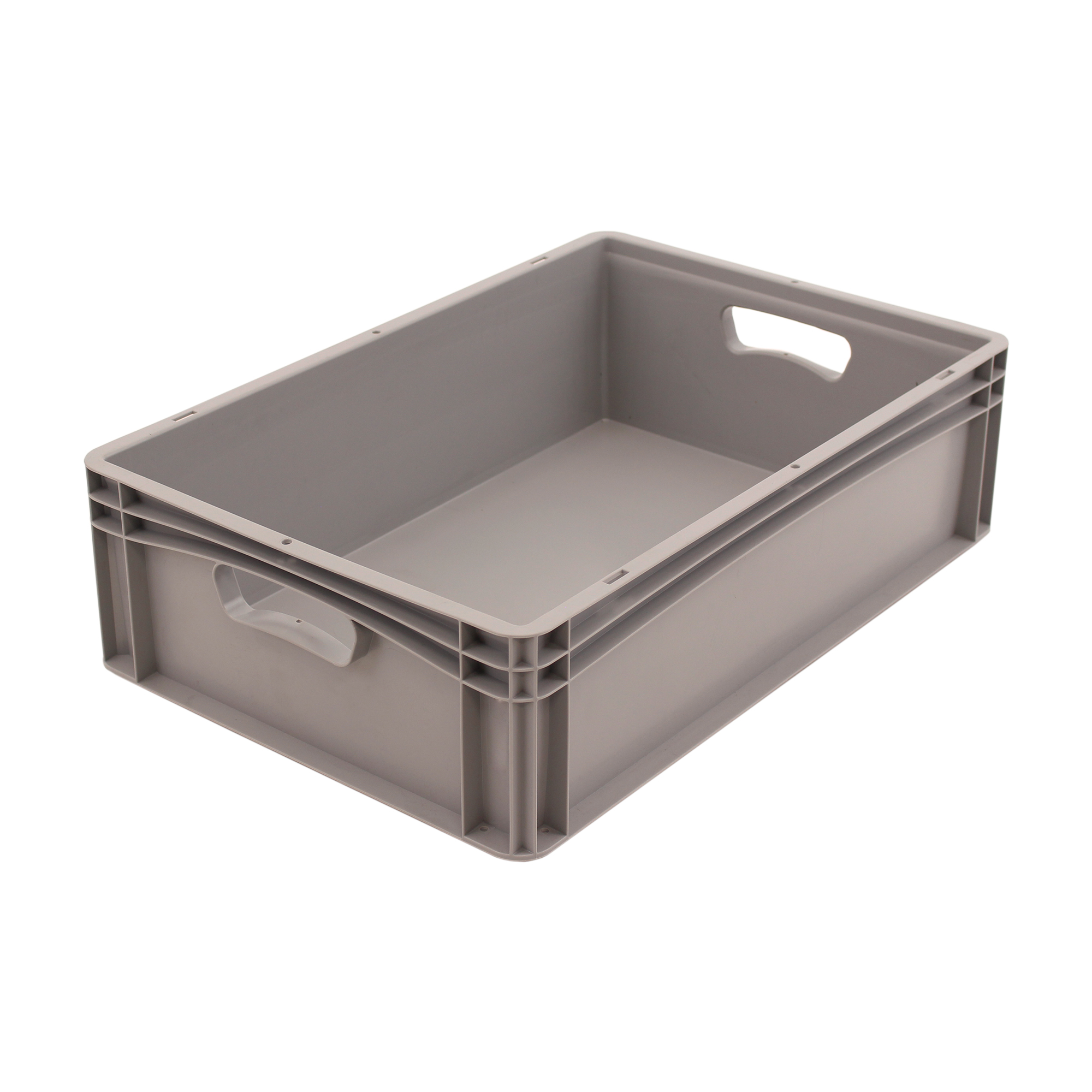Basic information Article number: 01640172BV1 Article type: Stacking Boxes Color: grey Material : PP Shipping unit : 1 piece Quantity per pallet : 48 pieces Quantity per carton : 4 pieces More product features Handles : two Description sides : closed Base design : solid, no ribs Suitable for food-contact : suitable for food-contact Dimensions and loads External dimensions (approx.) : 600 x 400 x 170 mm Internal dimensions (approx.) : 567 x 367 x 167 mm Load capacity stat. (approx.) : 20 kg Usable volume (approx.) : 36 l -