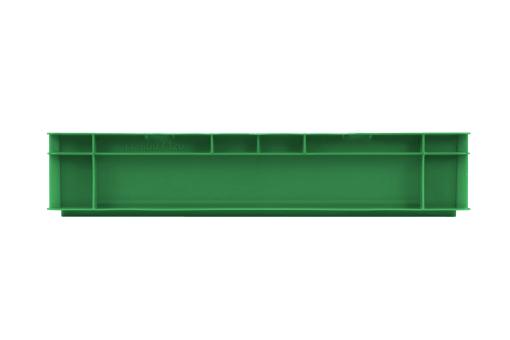 Basic information Article number: 01640124AEG Article type: Stacking Boxes Color: green Material : PP Shipping unit : 1 piece Quantity per pallet : 64 pieces Quantity per carton : 6 pieces More product features Handles : closed hand holes Description sides : closed Base design : solid, no ribs Suitable for food-contact : suitable for food-contact Dimensions and loads External dimensions (approx.) : 600 x 400 x 120 mm Internal dimensions (approx.) : 551 x 352 x 110 mm Load capacity stat. (approx.) : 40 kg Usable volume (approx.) : 20 l -