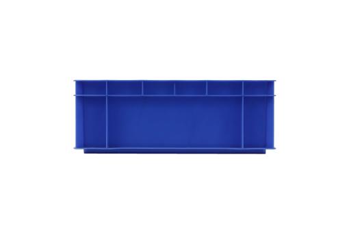 Basic information Article number: 01640145AE Article type: Stacking Boxes Color: blue Material : PP Shipping unit : 1 piece Quantity per pallet : 52 pieces Quantity per carton : 4 pieces More product features Handles : closed hand holes Description sides : closed Base design : solid, no ribs Suitable for food-contact : suitable for food-contact Dimensions and loads External dimensions (approx.) : 600 x 400 x 145 mm Internal dimensions (approx.) : 551 x 352 x 133 mm Load capacity stat. (approx.) : 45 kg Usable volume (approx.) : 28 l -