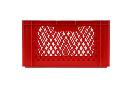 On the sides as well as on the base perforated stacking container with two practical handles and only 1.75kg self- weight having a usable volume of 59 litres. Delivery in red.