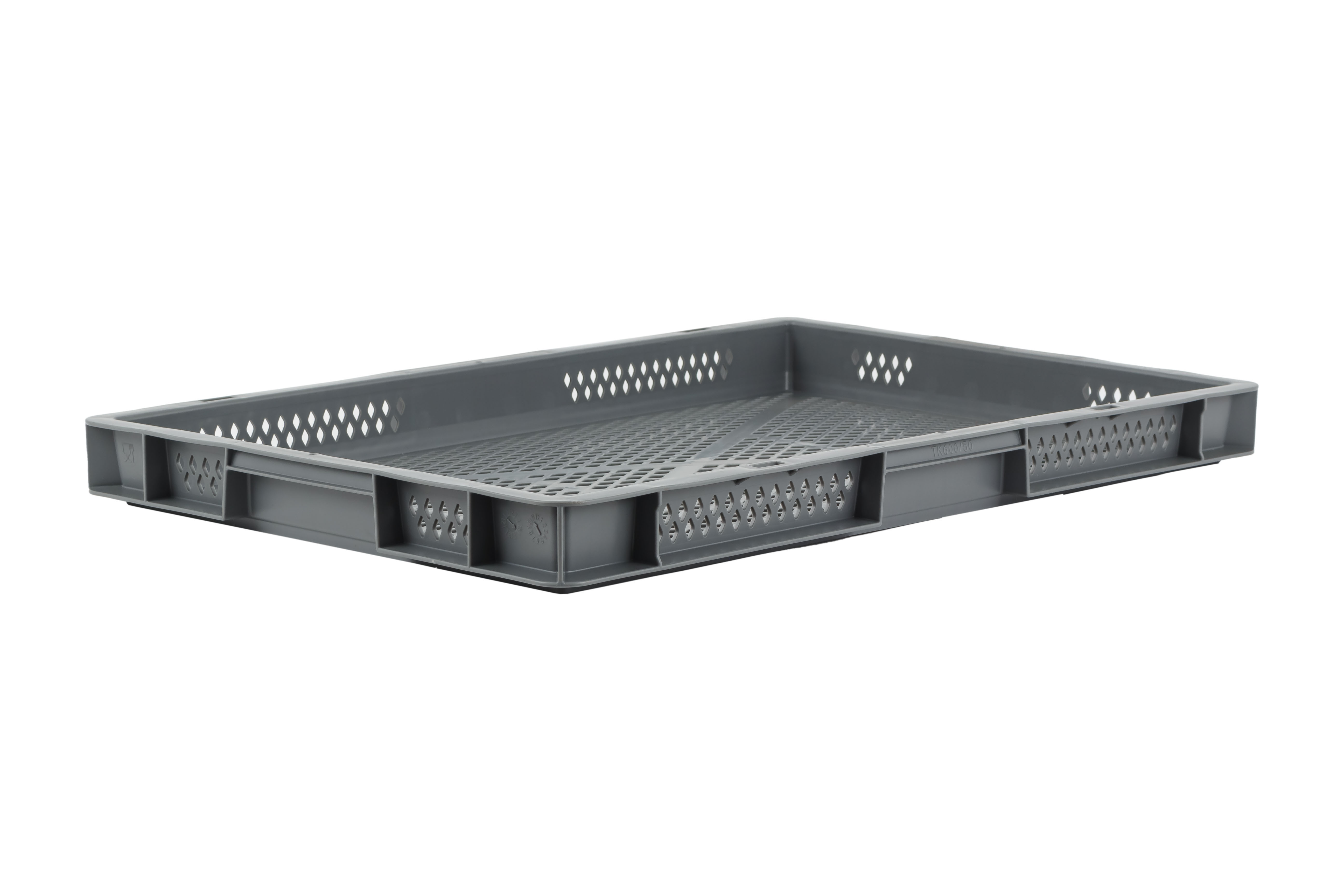 Basic information Article number: 01640050LV3 Article type: Stacking Boxes Color: grey Material : PP Shipping unit : 1 piece Quantity per pallet : 120 pieces Quantity per carton : 16 pieces More product features Handles : closed hand holes Description sides : perforated Base design : perforated Suitable for food-contact : suitable for food-contact Dimensions and loads External dimensions (approx.) : 600 x 400 x 50 mm Internal dimensions (approx.) : 551 x 352 x 40 mm Load capacity stat. (approx.) : 15 kg Usable volume (approx.) : 8 l -