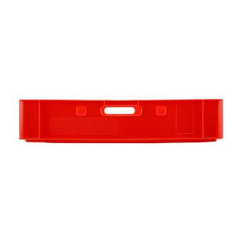 High-quality HDPE stacking container with four ergonomic handles and 20 litres of useful volume with an empty weight of only 1.5kg. In a red design.
