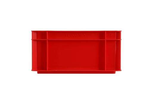 Basic information Article number: 01320145AER Article type: Stacking Boxes Color: red Material : PP Shipping unit : 1 piece Quantity per pallet : 224 pieces Quantity per carton : 8 pieces More product features Handles : closed hand holes Description sides : closed Base design : solid, no ribs Suitable for food-contact : suitable for food-contact Dimensions and loads External dimensions (approx.) : 300 x 200 x 145 mm Internal dimensions (approx.) : 252 x 152 x 133 mm Load capacity stat. (approx.) : 25 kg Usable volume (approx.) : 6 l -