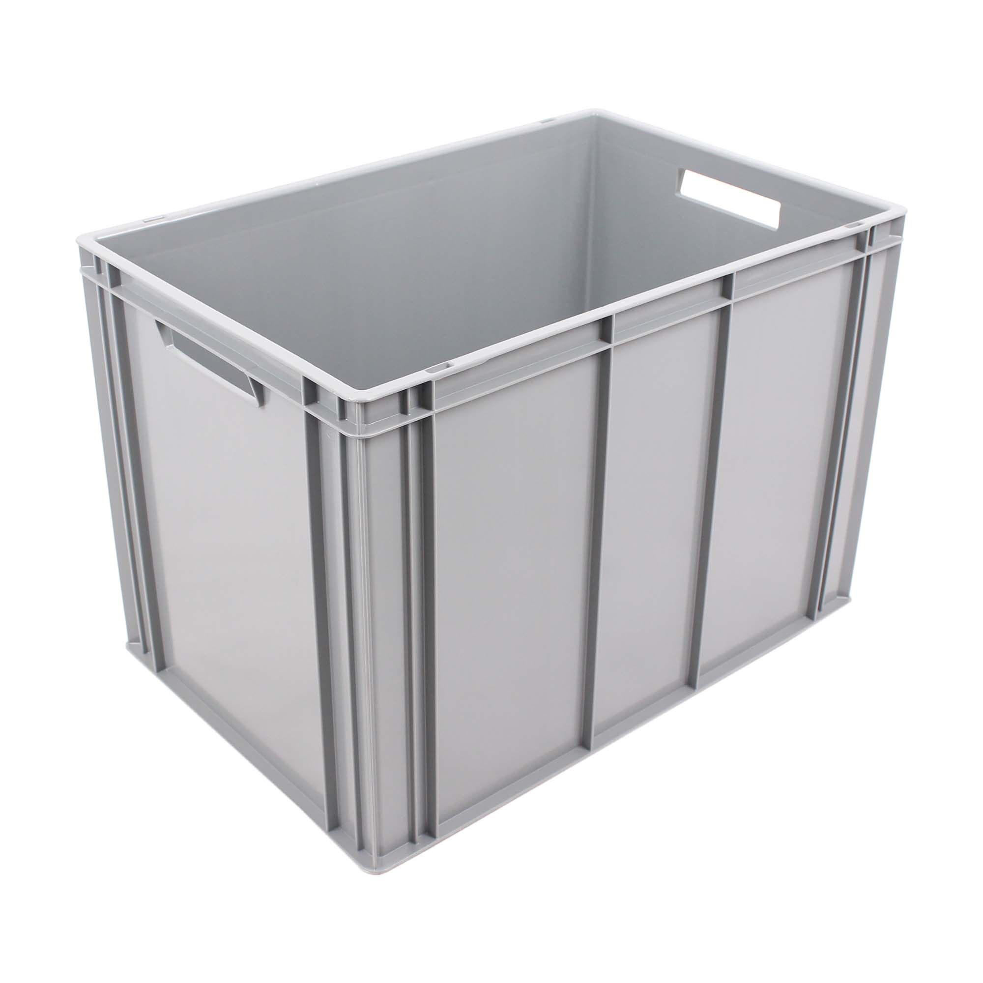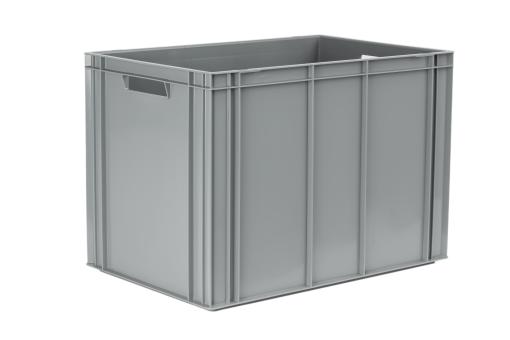 High-quality tall HDPE stacking container with a total of 86 litres of useful volume with a special ribbed base version for extra stability. Delivery in grey.
