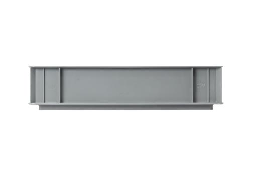 Basic information Article number: 01640080E Article type: Stacking Boxes Color: grey Material : HDPE Shipping unit : 1 piece Quantity per pallet : 100 pieces Quantity per carton : 8 pieces More product features Handles : closed hand holes Description sides : closed Base design : closed, ribbed Dimensions and loads External dimensions (approx.) : 600 x 400 x 91 mm Internal dimensions (approx.) : 570 x 370 x 87 mm Usable volume (approx.) : 16 l -