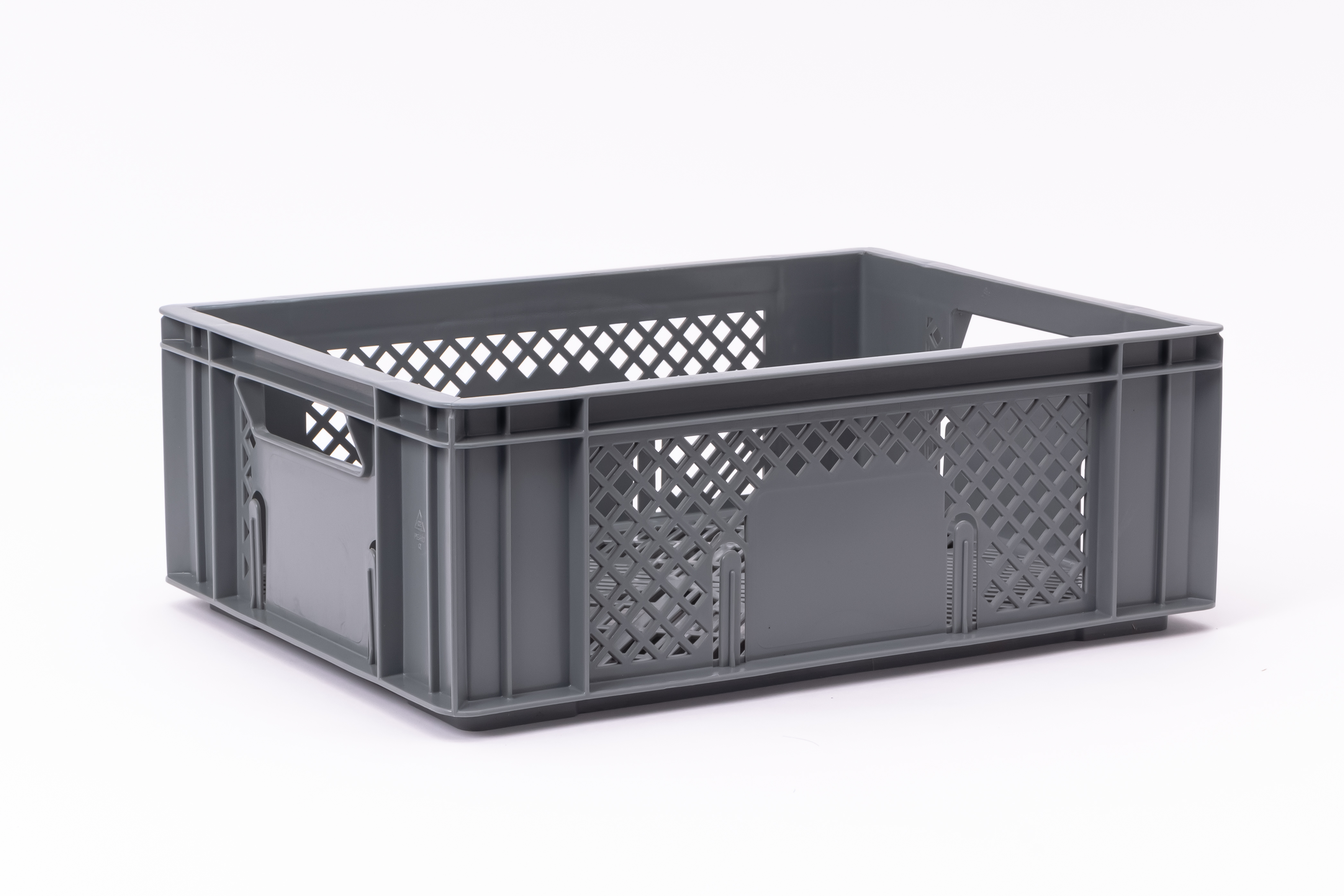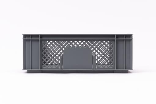 Basic information Article number: 01430142E Article type: Stacking Boxes Color: grey Material : HDPE Shipping unit : 1 piece Quantity per pallet : 112 pieces Quantity per carton : 8 pieces More product features Handles : two Description sides : perforated Base design : perforated Dimensions and loads External dimensions (approx.) : 400 x 300 x 142 mm Internal dimensions (approx.) : 372 x 272 x 128 mm Usable volume (approx.) : 13 l -