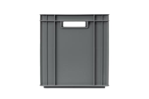 Sturdy stacking container with 31 litres of useful volume and grey design, thanks to ribbed base particularly load-bearing, can also be used as a transport box due to its two practical handles.