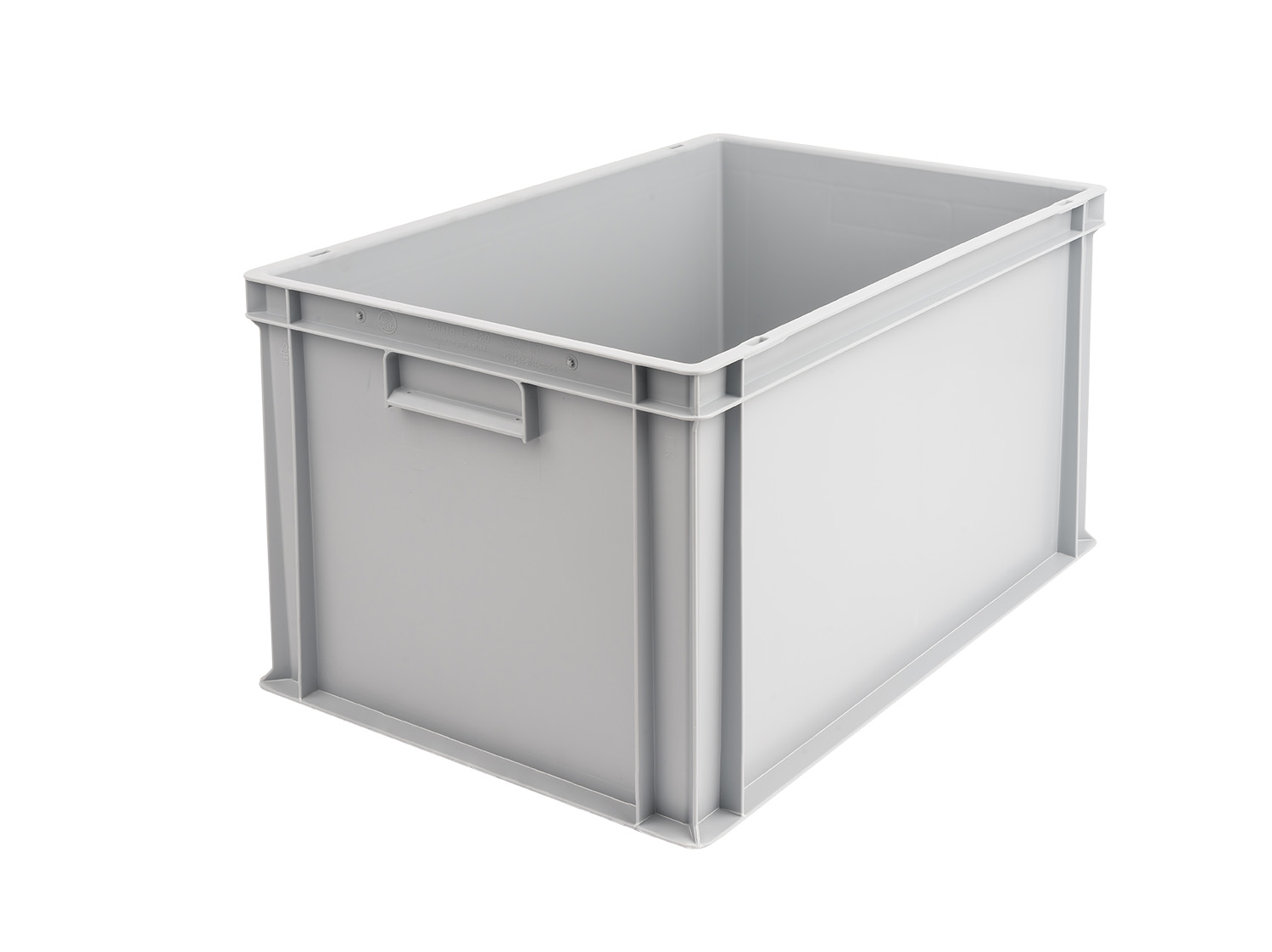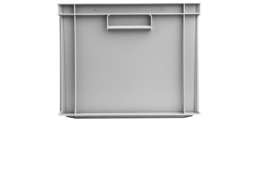 Basic information Article number: 01640324M Article type: Stacking Boxes Color: light grey Material : PP Shipping unit : 1 piece Quantity per pallet : 24 pieces Quantity per carton : 2 pieces More product features Handles : recessed grip Description sides : closed Base design : closed Dimensions and loads External dimensions (approx.) : 600 x 400 x 320 mm Internal dimensions (approx.) : 566 x 366 x 305 mm Usable volume (approx.) : 63 l -