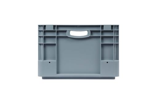 Basic information Article number: 01640270SV Article type: Stacking Boxes Color: grey Material : PP Shipping unit : 1 piece Quantity per pallet : 32 pieces Quantity per carton : 2 pieces More product features Handles : two Description sides : closed Base design : solid, no ribs Suitable for food-contact : suitable for food-contact Dimensions and loads External dimensions (approx.) : 600 x 400 x 270 mm Internal dimensions (approx.) : 567 x 367 x 266 mm Load capacity stat. (approx.) : 50 kg Usable volume (approx.) : 50 l -