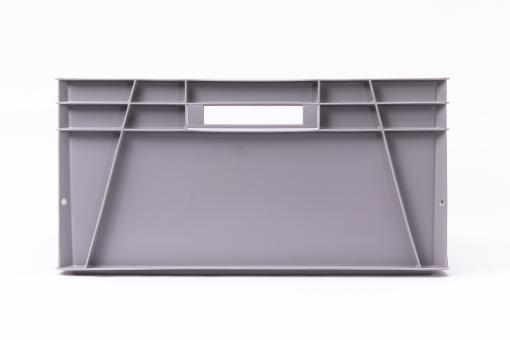 Basic information Article number: 01860300 Article type: Stacking Boxes Color: grey Material : HDPE Shipping unit : 1 piece Quantity per carton : 1 pieces More product features Handles : two Description sides : closed Base design : closed Dimensions and loads External dimensions (approx.) : 800 x 600 x 300 mm Internal dimensions (approx.) : 750 x 550 x 287 mm Load capacity stat. (approx.) : 80 kg Usable volume (approx.) : 118 l -