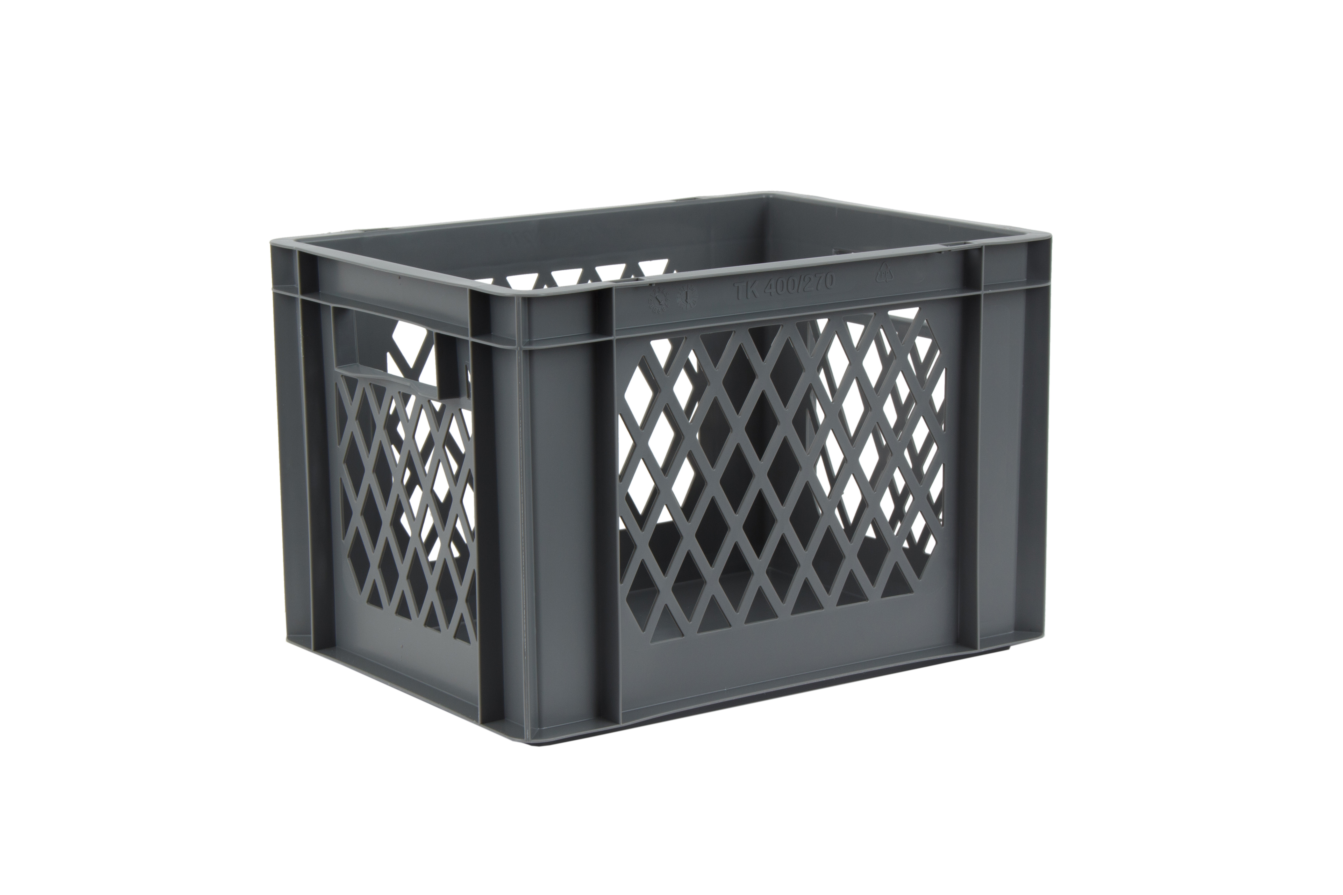 Données de base Référence d'article: 01430270BFV Type d'article: Bacs Gerbables Couleur: gris Matériel : PP Unité d'envoi : 1 pièce Quantité par emplacement palette : 56 pièces Autres caractéristiques du produit Poignées : deux Finition des parois : ajouré Type de fond : fermé, lisse Qualité alimentaire : approprié au contact alimentaire Dimensions et charges Dimensions extérieures (env.) : 400 x 300 x 270 mm Dimensions intérieures (env.) : 356 x 255 x 255 mm Charge maximum stat. (env.) : 30 kg Volume utile (env.) : 23 l -