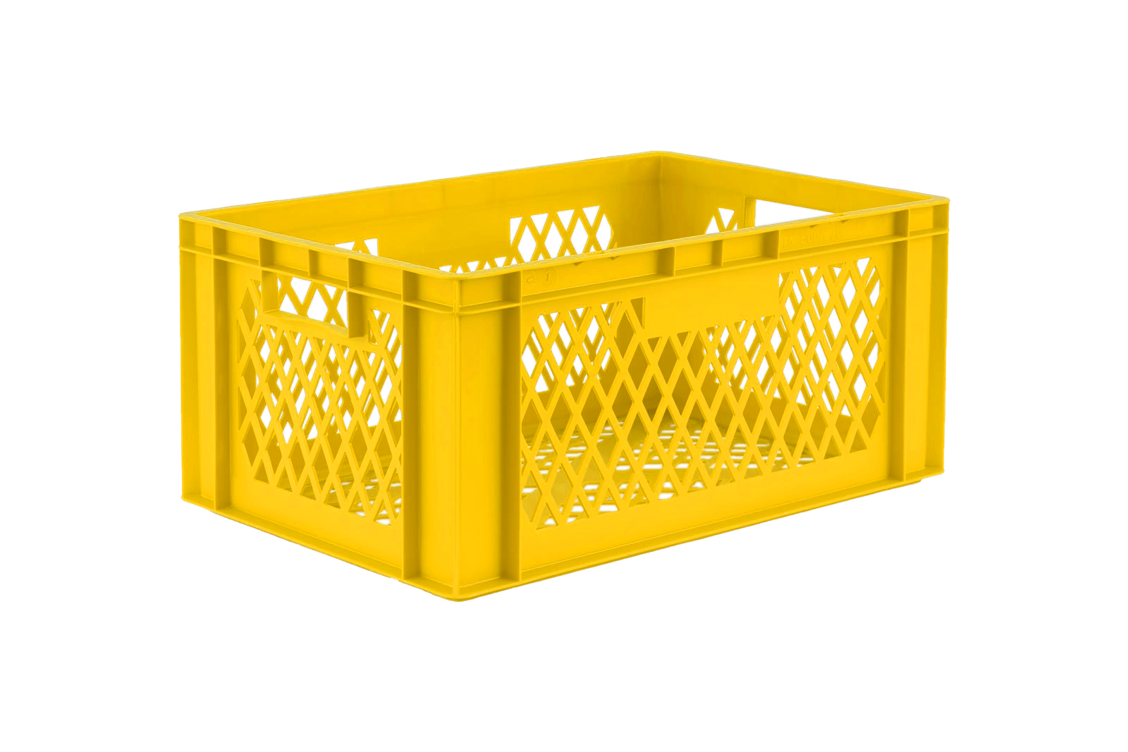 Données de base Référence d'article: 01640270BJA Type d'article: Bacs Gerbables Couleur: jaune Matériel : PP Unité d'envoi : 1 pièce Quantité par emplacement palette : 28 pièces Quantité par carton : 2 pièces Autres caractéristiques du produit Poignées : deux Finition des parois : ajouré Type de fond : ajouré Qualité alimentaire : approprié au contact alimentaire Dimensions et charges Dimensions extérieures (env.) : 600 x 400 x 270 mm Dimensions intérieures (env.) : 551 x 352 x 255 mm Charge maximum stat. (env.) : 35 kg Volume utile (env.) : 50 l -