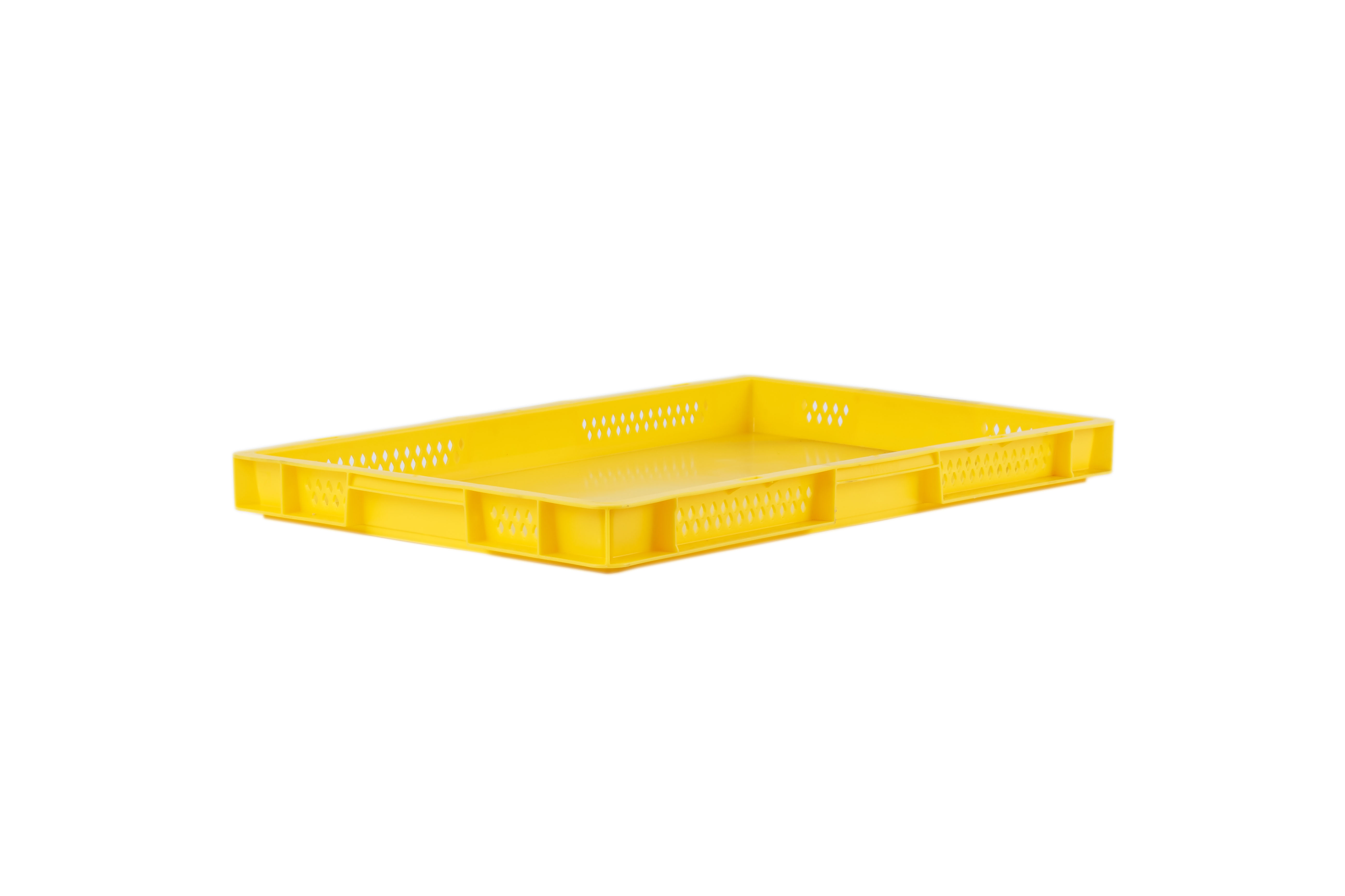 Dina 50 2 jaune - Bac gerbable doté des mêmes caractéristiques que le « Dina 50 1 » : de norme euro, en polypropylène de haute qualité, apte au contact alimentaire et disponible dans 5 coloris. A la différence du « Dina 50 1 » , il dispose d'un fond fermé lisse et de parois ajourées assurant une bonne circulation de l'air nécessaire au stockage et au transport d'un grand nombre de produits en particulier certaines denrées alimentaires.