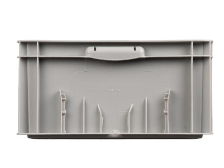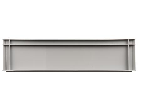 Sotos gris - Le bac gerbable de longueur spécifique, aux dimensions de base 800 x 400 mm sur une hauteur de 200 mm. Doté d'un fond et de parois fermés, il protège parfaitement le contenu. Il peut être utilisé en mode manuel et automatisé, sur tout type de convoyeur. D'un poids net de 2,7 kg seulement, il permet de transporter un volume utile de 54 litres. Dans un coloris gris.