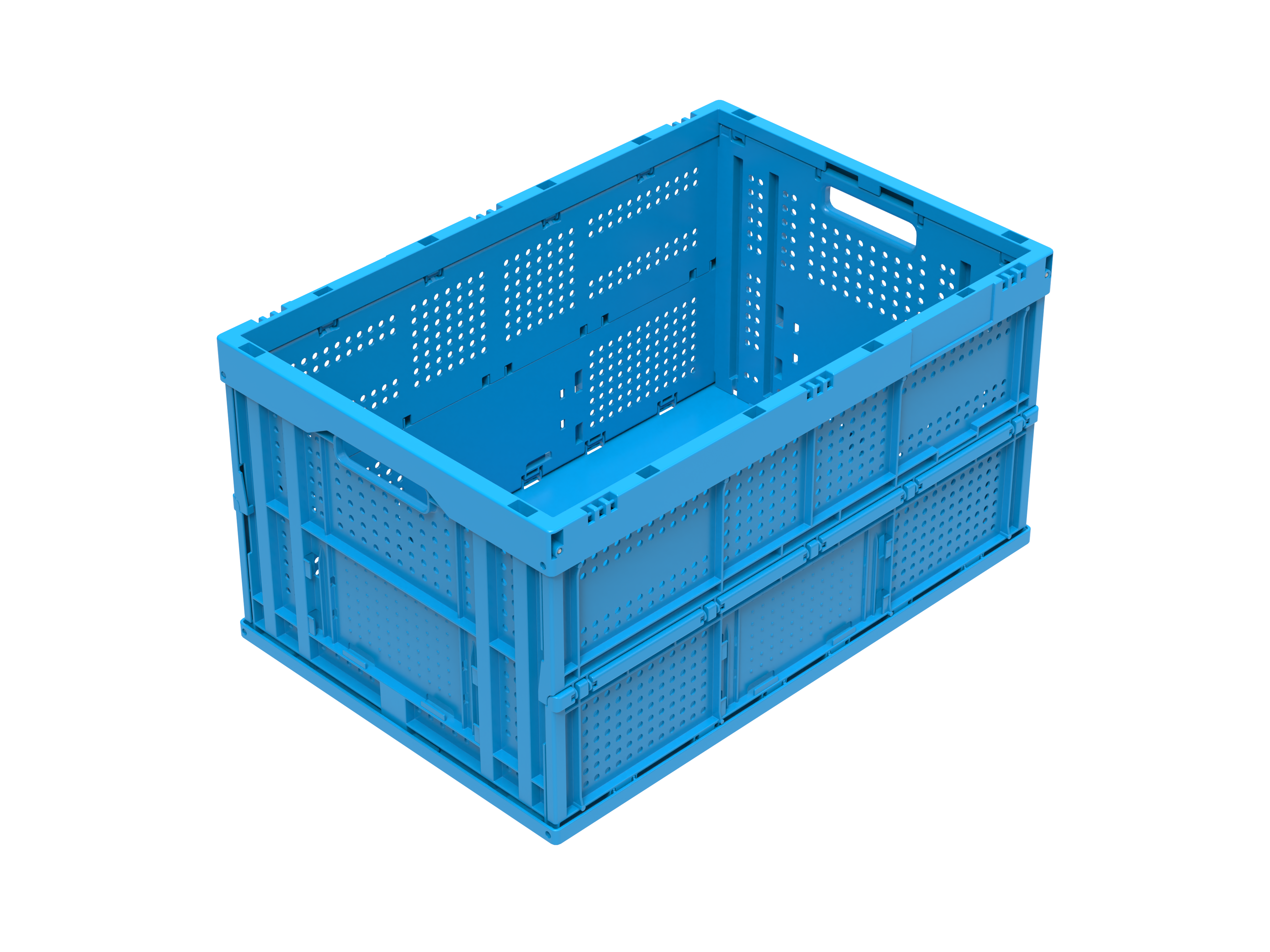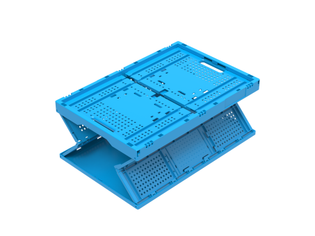 - Le bac pliable 6432 V1 L se présente avec des parois latérales ajourées et un fond fermé, légèrement nervuré.