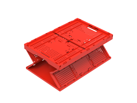 - Le bac pliable 6432 V1 L se présente avec des parois latérales ajourées et un fond fermé, légèrement nervuré.