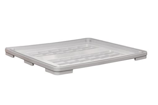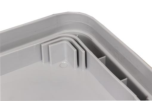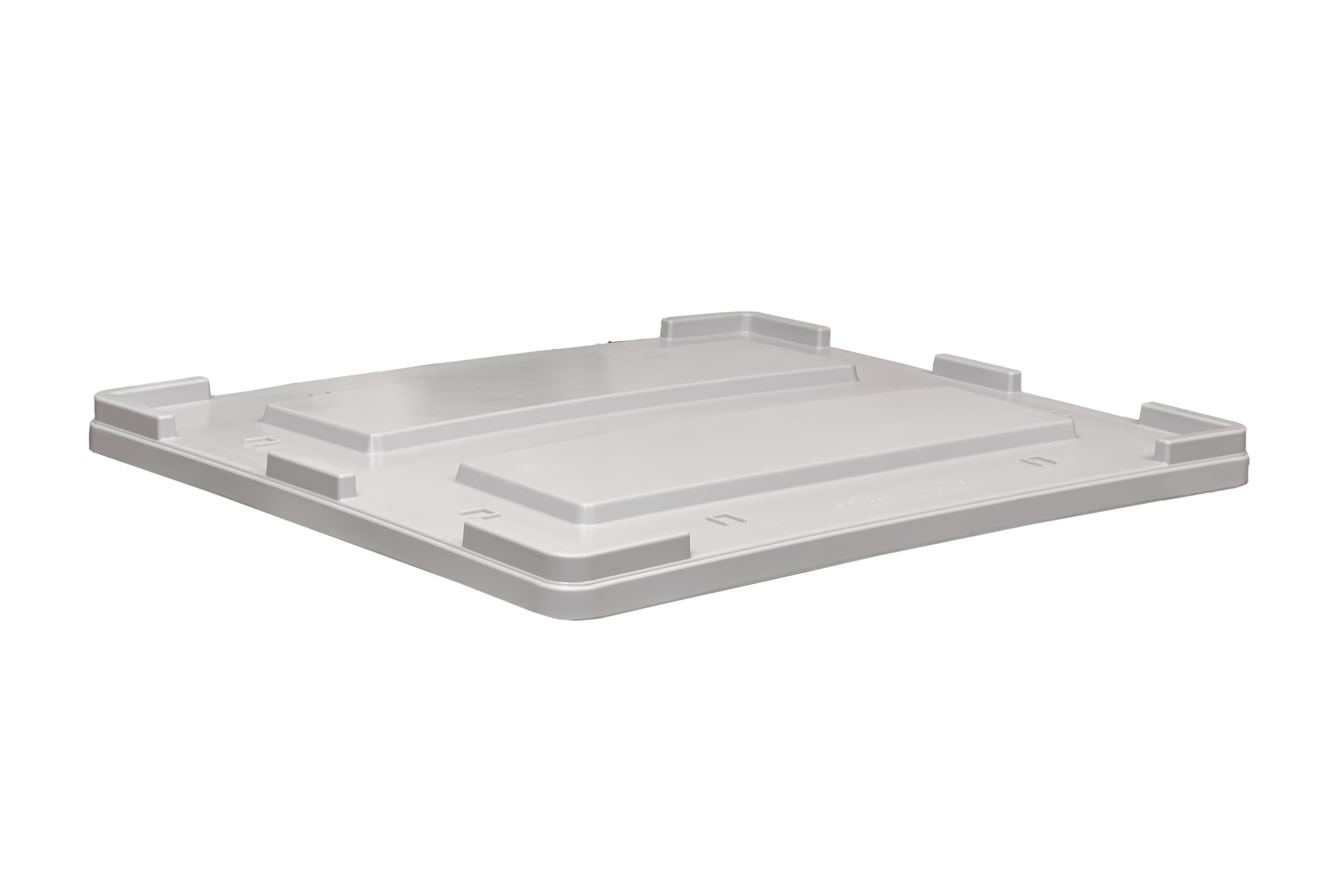 Couvercle coiffant 1200x1000 gris - Couvercle coiffant gigantesque adapté à nos plus grands bacs rigides en plastique de 1200 x 1000 mm de la gamme Jumbo. Variante en gris.
