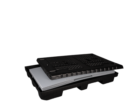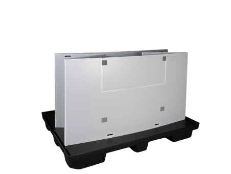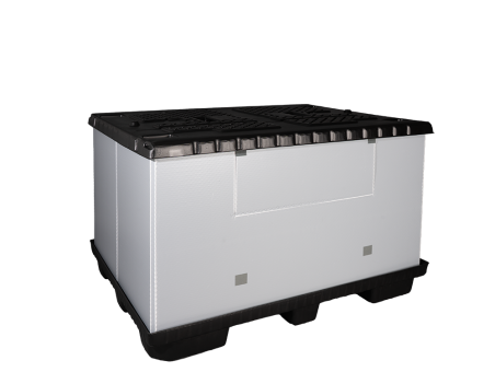 Mega-Pack 1600 gris-noir - Caisse-palette pliable pour volumes XL, dans les dimensions de base spéciales (1600 x 1200 : 2 Euro-palettes) et au volume utile de 1331 l. Équipée d'un abattant d'ouverture pour chargement et déchargement aisé. Verrouillage de la palette (sur 9 pieds) et du couvercle avec la ceinture et gerbage sécurisé grâce aux points d'ancrage sur le couvercle. 2 poignées encastrées dans le couvercle pour faciliter la prise en mains. Espace de stockage et de transport optimisé.
