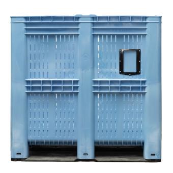 Innobox 1250 2 bleu - Caisse-palette d'une capacité de 1 400 litres pour transporter ou stocker des marchandises en vrac, qu'elles soient agro-alimentaires ou de production industrielle. Dans les dimensions spéciales de 1300 x 1150 x 1250 mm (H), elle dispose de parois ajourées qui offrent une bonne circulation d'air aux produits qui en ont besoin. Équipée de 3 semelles stabilisantes. Dotée d'une structure renforcée, elle est empilable sur plusieurs hauteurs. Adaptée au convoyeur automatique.
