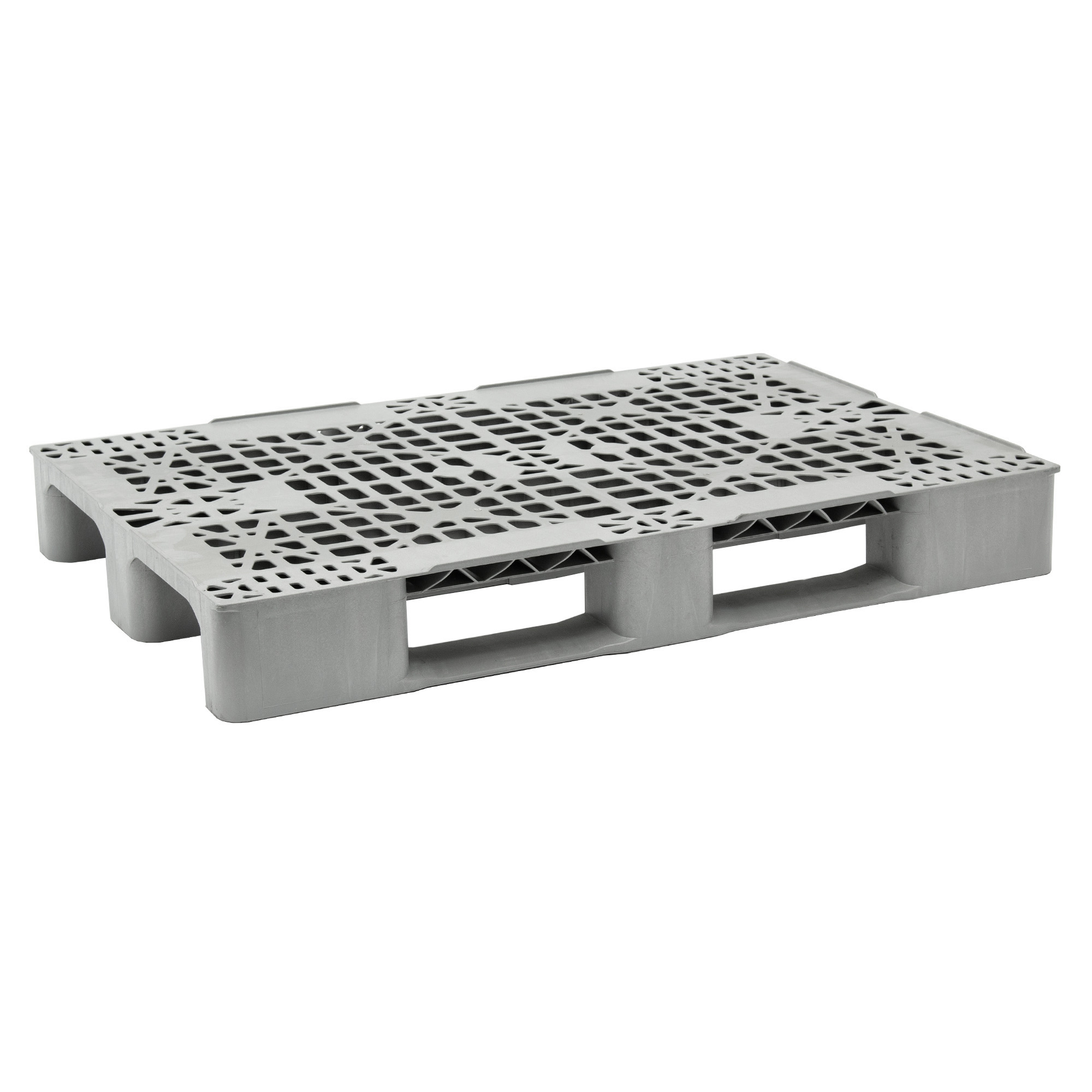 Palette universelle 1280 - 1 gris - Cette palette universelle en PP convainc par sa capacité de charges élevées (jusqu'à 3000 kg) pour un faible poids propre net de 13 kg, Elle est équipée d'un plateau de palette ajouré et de rebords anti-glisse. Dotée de 3 semelles très stables, elles sont parfaites en circuit fermé, pour la distribution des marchandises de tous secteurs industriels et pour l'exportation. Parfaitement adaptées aux systèmes automatisés et au stockage en racks.