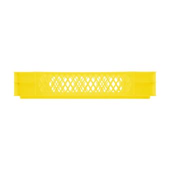 Band 75 2 jaune- Le deuxième modèle de la gamme Band 75 est doté d'un fond lisse et de parois ajourées ainsi que de petits éléments de treillis sur les petits côtés, pour un meilleur aperçu des marchandises contenues dans le bac en plastique et une meilleure circulation de l'air. De qualité alimentaire et très facile à nettoyer, ce bac gerbable est ici proposé en jaune mais est aussi disponible dans 4 autres coloris.