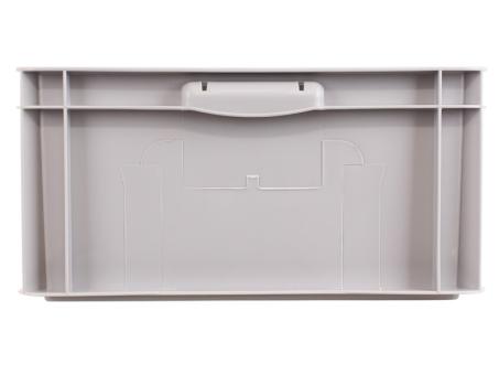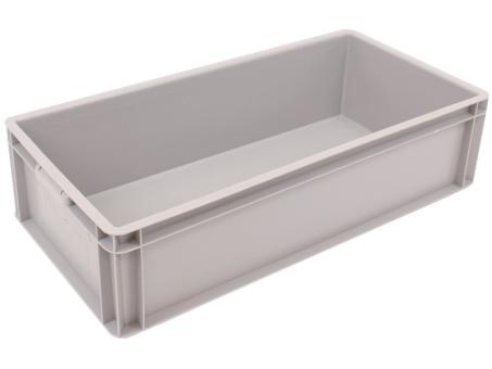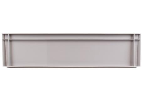 Sotos gris - Le bac gerbable de longueur spécifique, aux dimensions de base 800 x 400 mm sur une hauteur de 200 mm. Doté d'un fond et de parois fermés, il protège parfaitement le contenu. Il peut être utilisé en mode manuel et automatisé, sur tout type de convoyeur. D'un poids net de 2,7 kg seulement, il permet de transporter un volume utile de 54 litres. Dans un coloris gris.