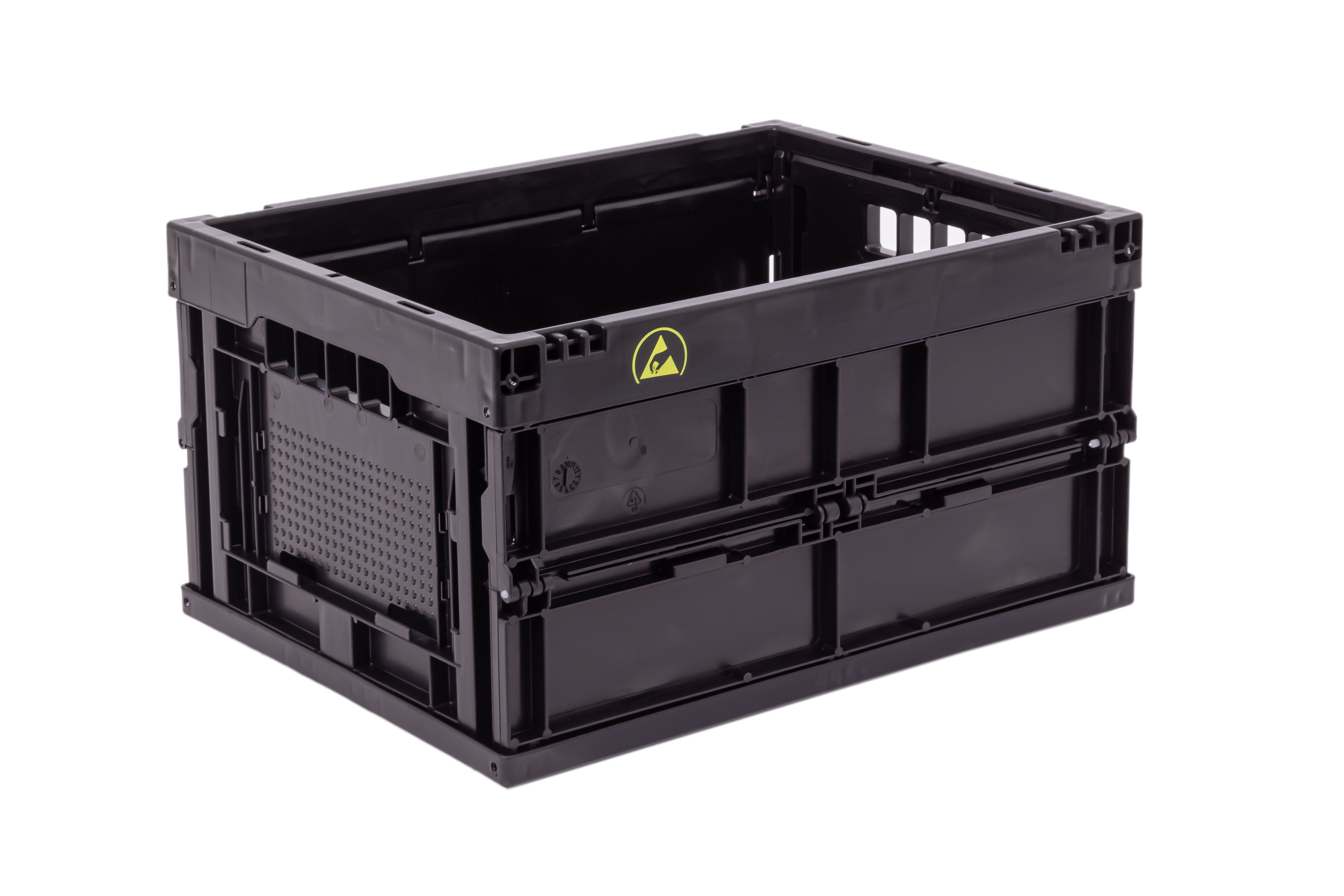 - Même les plus petites charges électriques peuvent endommager, voire même détruire certains composants électroniques. Comme tous les autres modèles de notre gamme en PP conducteur, le bac pliable 4322 ESD répond à toutes les exigences de l'industrie électronique et assure la protection efficace des composants sensibles pendant le transport.