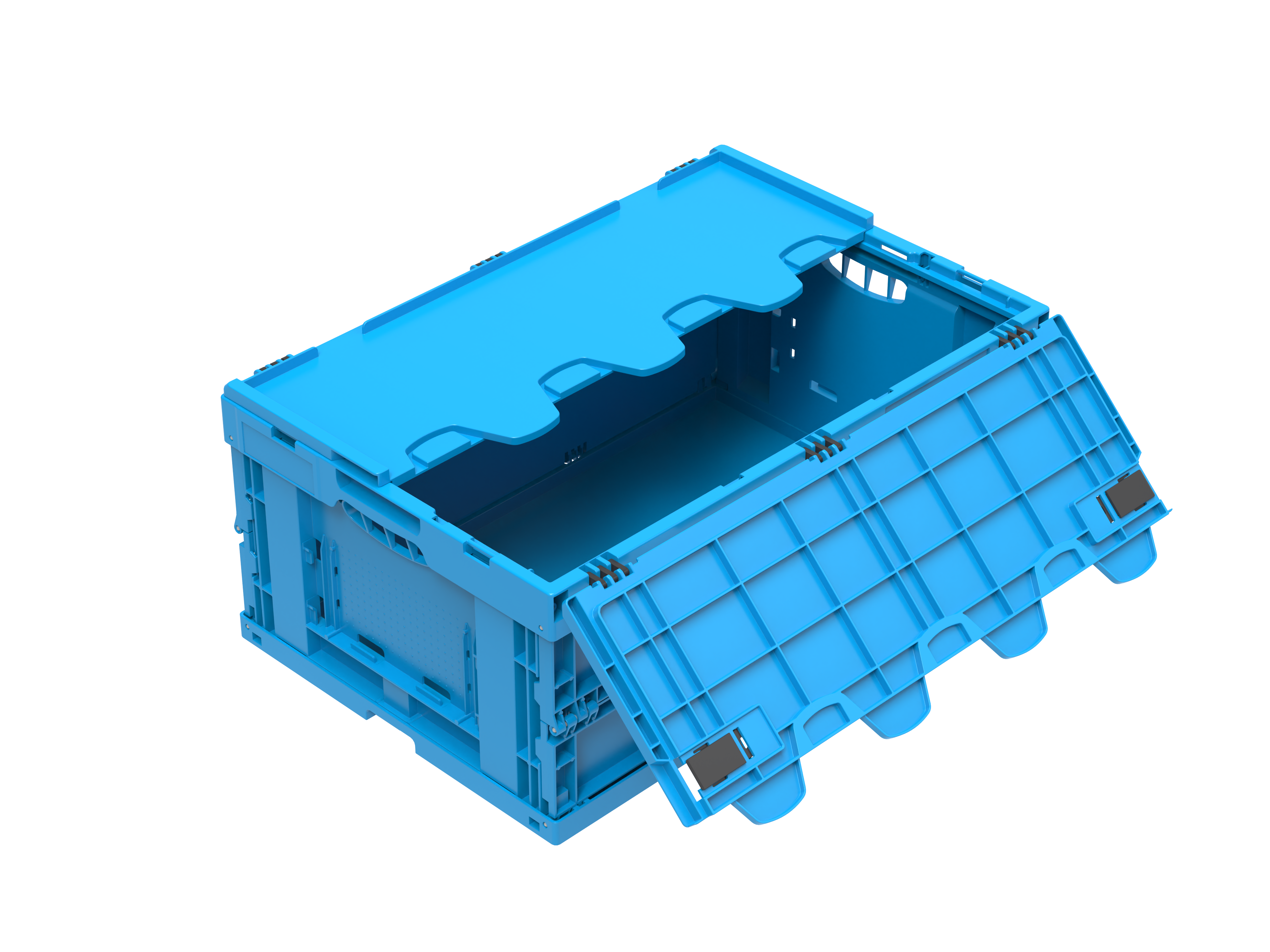 Améliorez vos processus logistiques : avec le bac pliable 6426 NG DL muni d‘un couvercle à charnières sur le long côté.