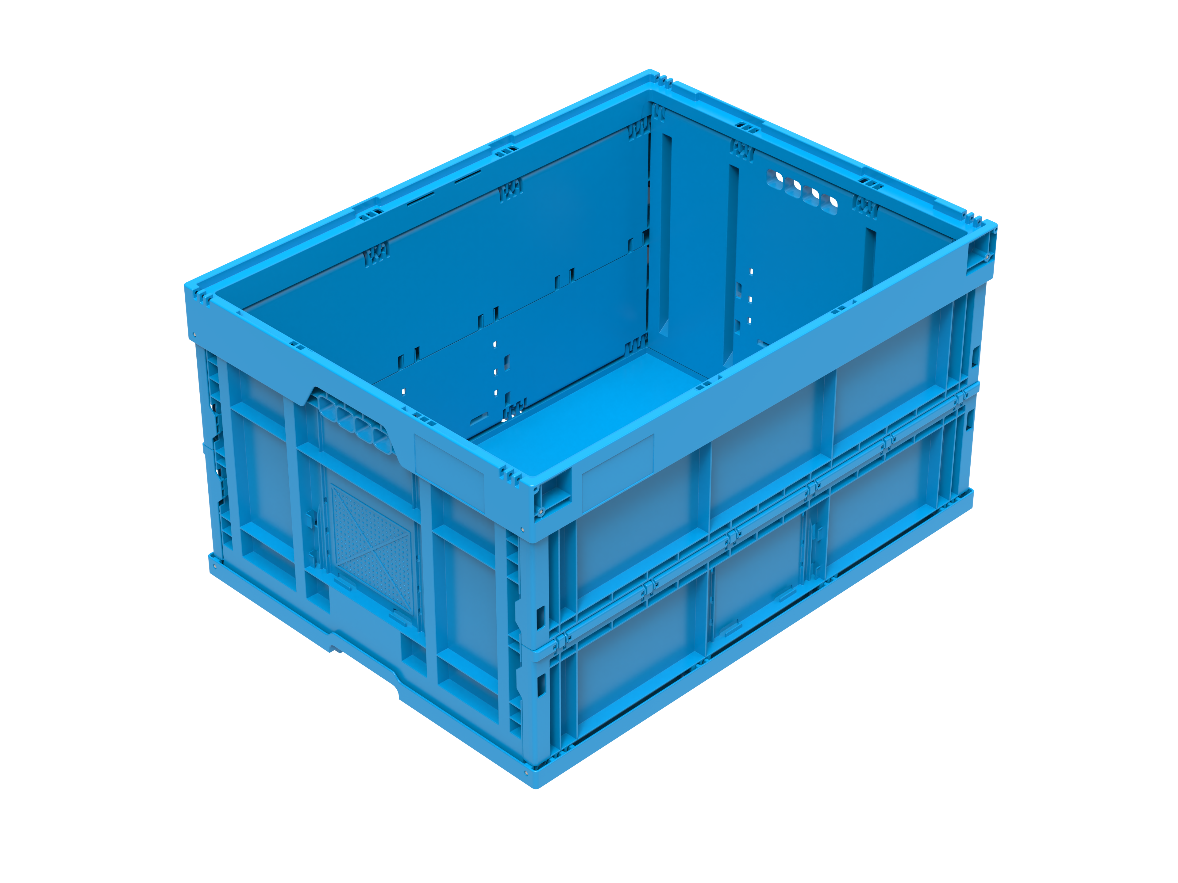 - Manutention aisée : comparés aux bacs à parois rabattables, les bacs pliables sont plus rapides à plier et à déplier et sont plus stables au gerbage grâce au cadre supérieur périphérique.