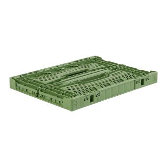Données de base Référence d'article: 04-1-00304 Type d'article: Bacs Rabattables Couleur: vert Matériel : PP-CoPo Unité d'envoi : 1 pièce Quantité par emplacement palette : 480 pièces Autres caractéristiques du produit Poignées : quatre Finition des parois : ajouré Type de fond : ajouré Qualité alimentaire : approprié au contact alimentaire Dimensions et charges Dimensions extérieures (env.) : 400 x 300 x 180 mm Dimensions intérieures (env.) : 398 x 299 x 166 mm Hauteur pliée (env.) : 36 mm Volume utile (env.) : 17 l -