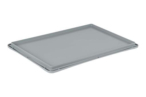 Couvercle coiffant 600x400 Base gris - Couvercle simple à poser pour protéger les marchandises, s'adapte parfaitement à tous les bacs en plastique de dimensions 600 x 400 mm de la gamme Base. Modèle en gris.