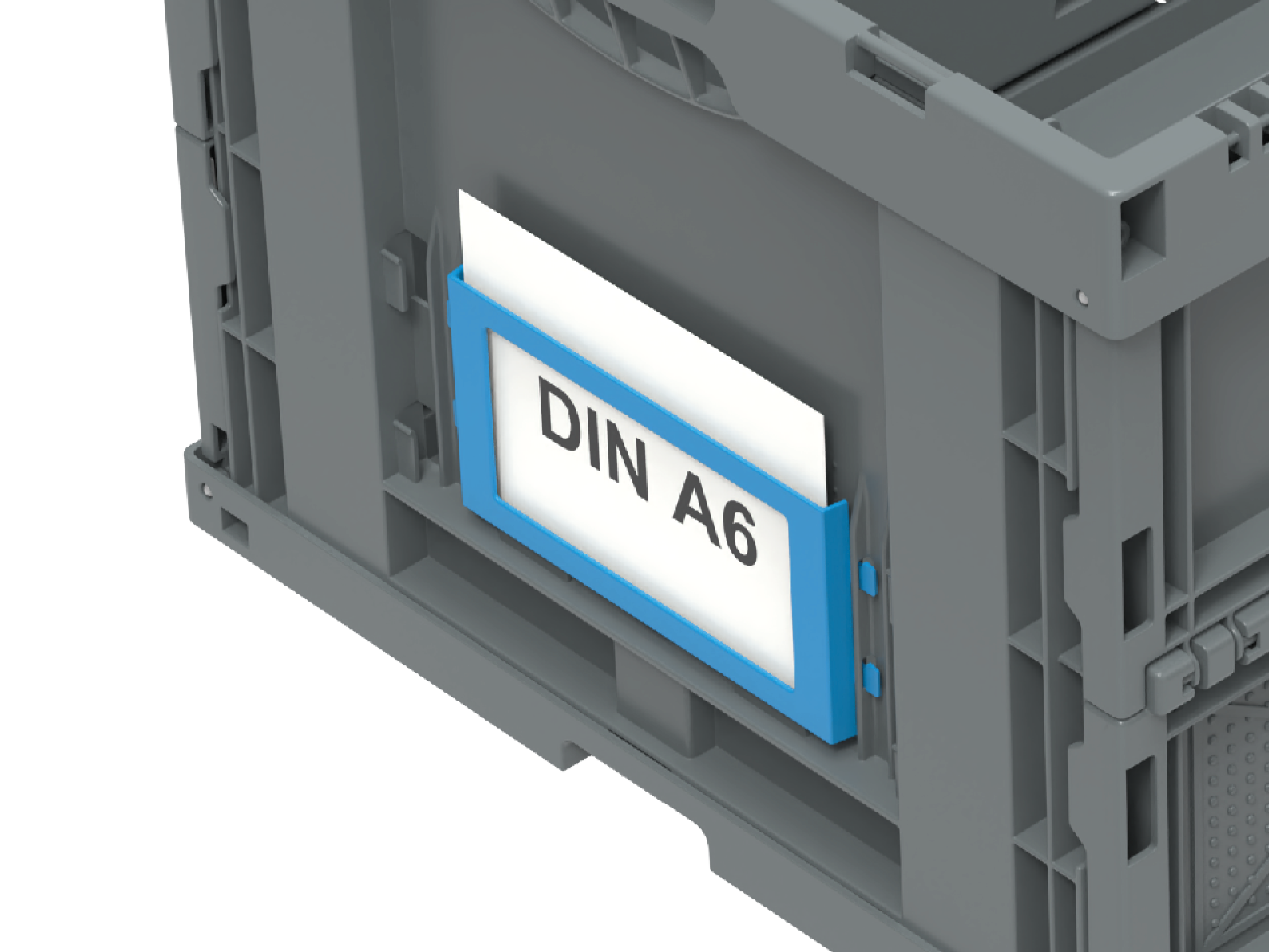 Etiketten, Namensgebungen und Markierungen sind unerlässlich, wenn es um die präzise und übersichtliche Verwaltung unterschiedlicher Güter und deren Kunststoffbehälter geht - die Etikettenhalter von boxline helfen dabei durch handliche Maße und einen sicheren Rahmen. Ausführung in WALTHER-blau, für die Falter-Faltboxen.