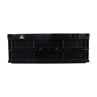 Basic information Article number: 04640220G Article type: Conductive Folding Boxes (ESD) Color: black Material : PP conductive Shipping unit : 1 piece Quantity per pallet : 120 pieces Quantity per carton : 10 pieces More product features Handles : two, with finger holes Description sides : closed Base design : solid, no ribs Conductivity : yes Additional product information: with ESD logo Dimensions and loads External dimensions (approx.) : 600 x 400 x 220 mm Internal dimensions (approx.) : 555 x 355 x 210 mm Folded height (approx.) : 70 mm Load capacity stat. (approx.) : 60 kg Usable volume (approx.) : 41 l -