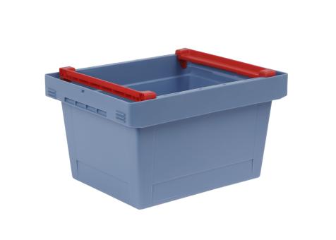 In beautiful pigeon-blue, - these literally nestable containers - feather-light at 1.1kg, handy undercut handles and 18 litres of useful volume, the Nestro 4322 SB plastic container not only scores points for its practical stacking bars, so your choice: Stacking or Nestable?