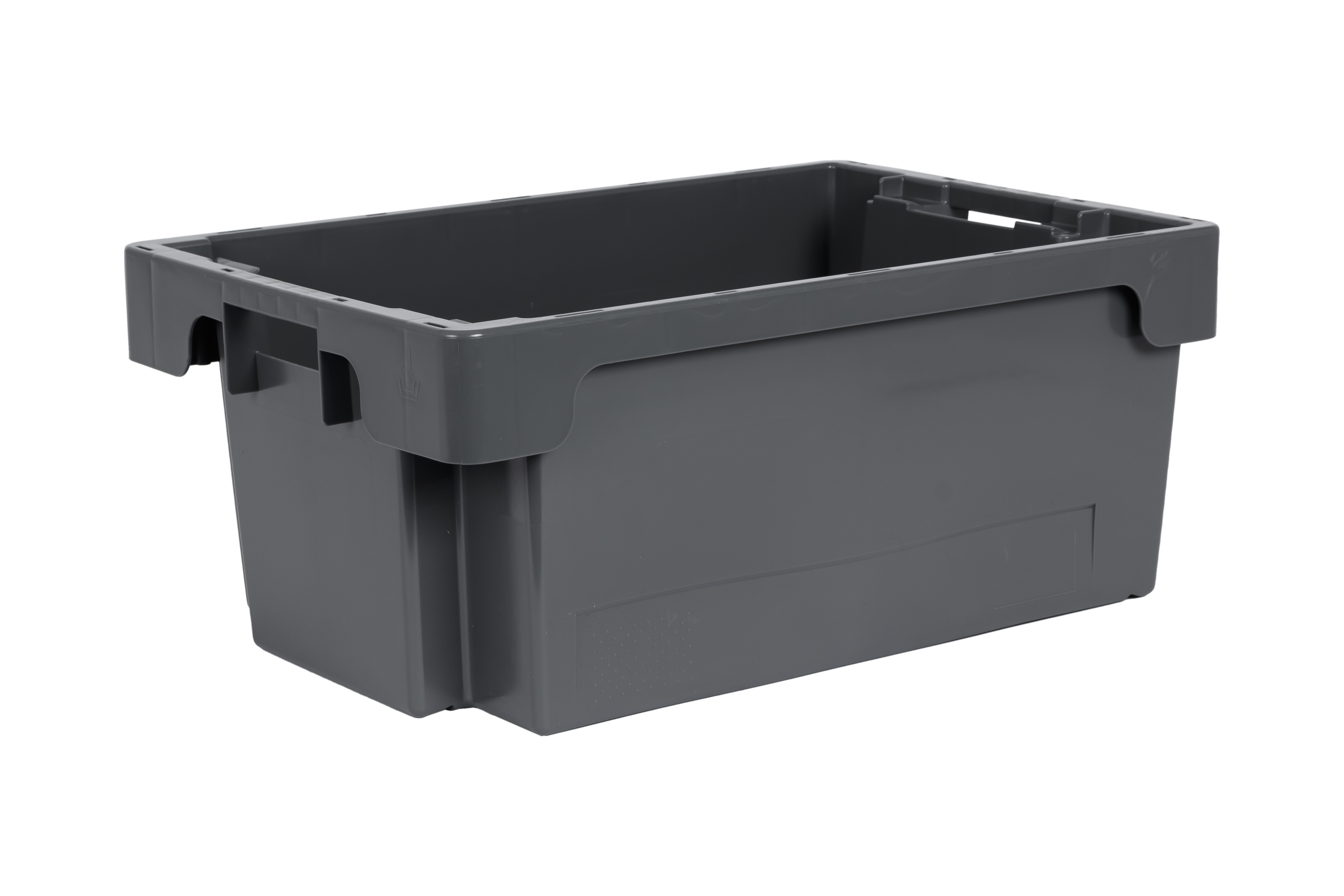Discreet grey stack & nest container with two practical handles, able to store up to 40 litres of goods and light at just 2.2kg.